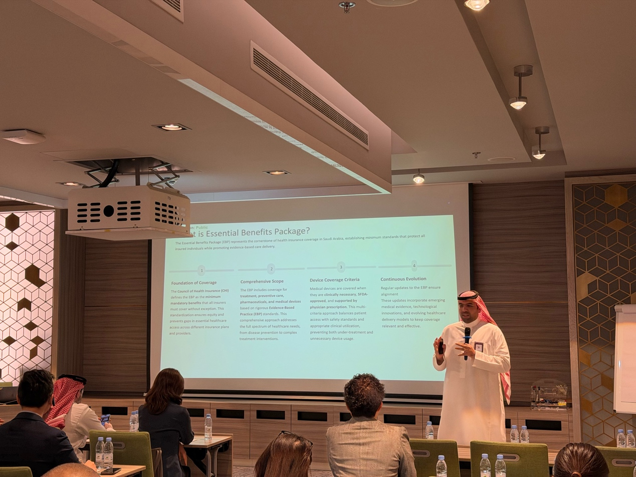 Abdualmajeed Binjumayah, Director of Pharmaceutical and Health Governance at Tawuniya (an insurance company), systematically introduced Saudi medical insurance's "Essential Benefits Package" policy and the access process for medical devices, suggesting that innovative products should be prepared with sufficient clinical value and economics data.